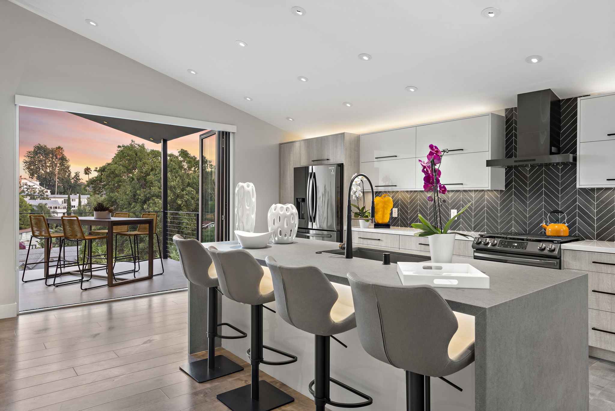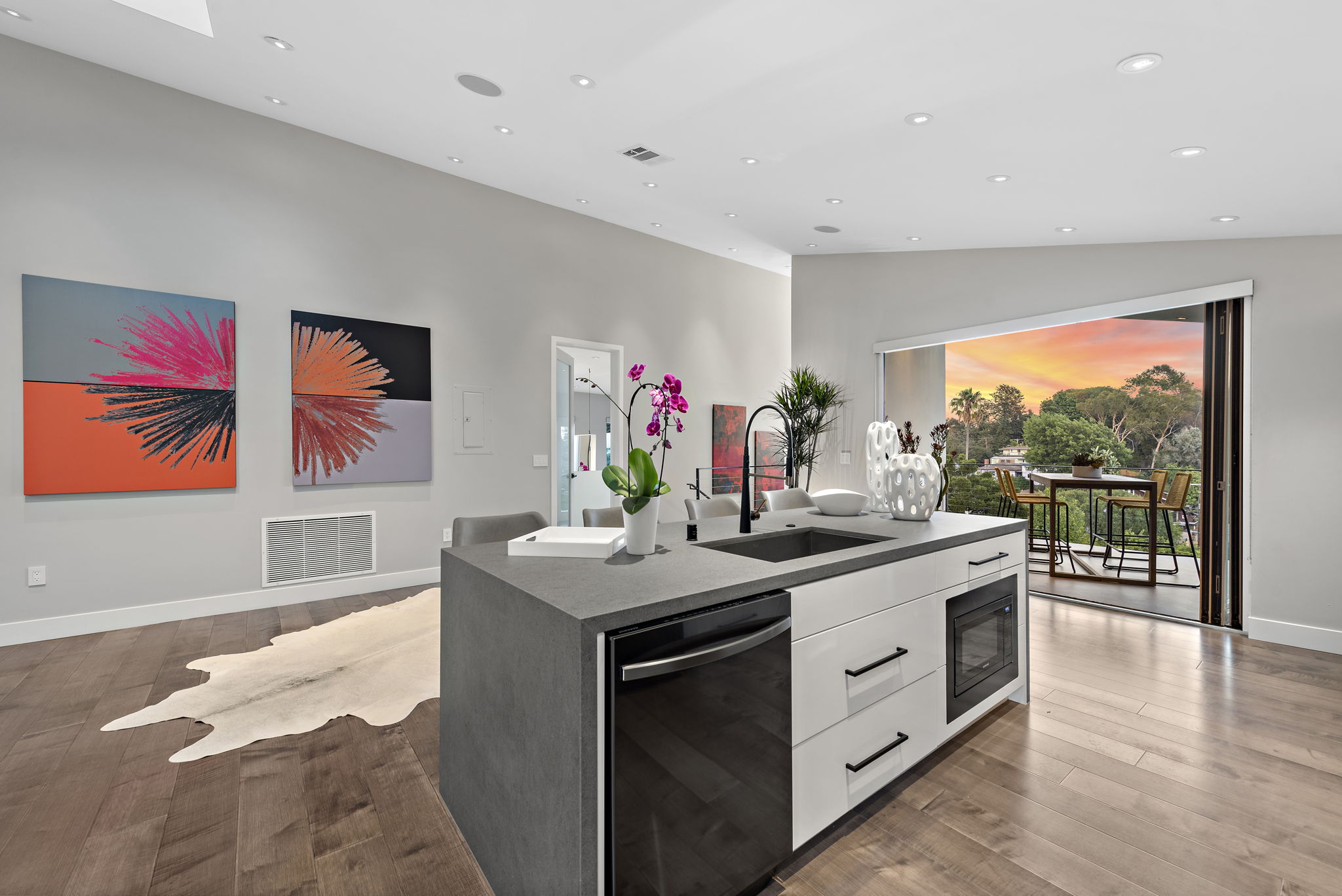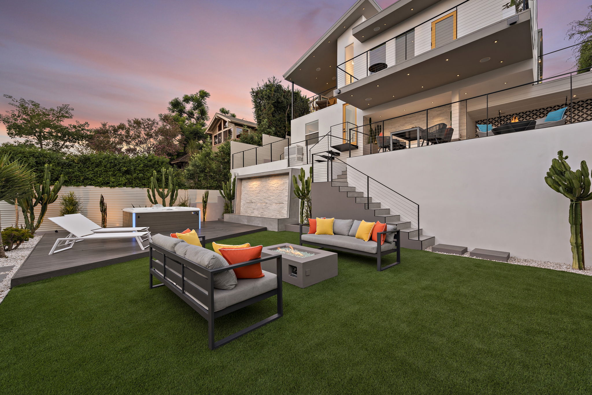 Perfectly sited on a tiered lot with East facing views, this 3-bedroom 3 bath home was taken down to one wall and completely rebuilt into a work of art in perfect harmony with today’s indoor/outdoor lifestyle. Multiple suspended patios bring the outside in at the master bedroom as well as off the kitchen, affording al fresco dining with views of the twinkling lights of the rolling hills & DTLA. This multi-tiered lot provides numerous areas to gather.
