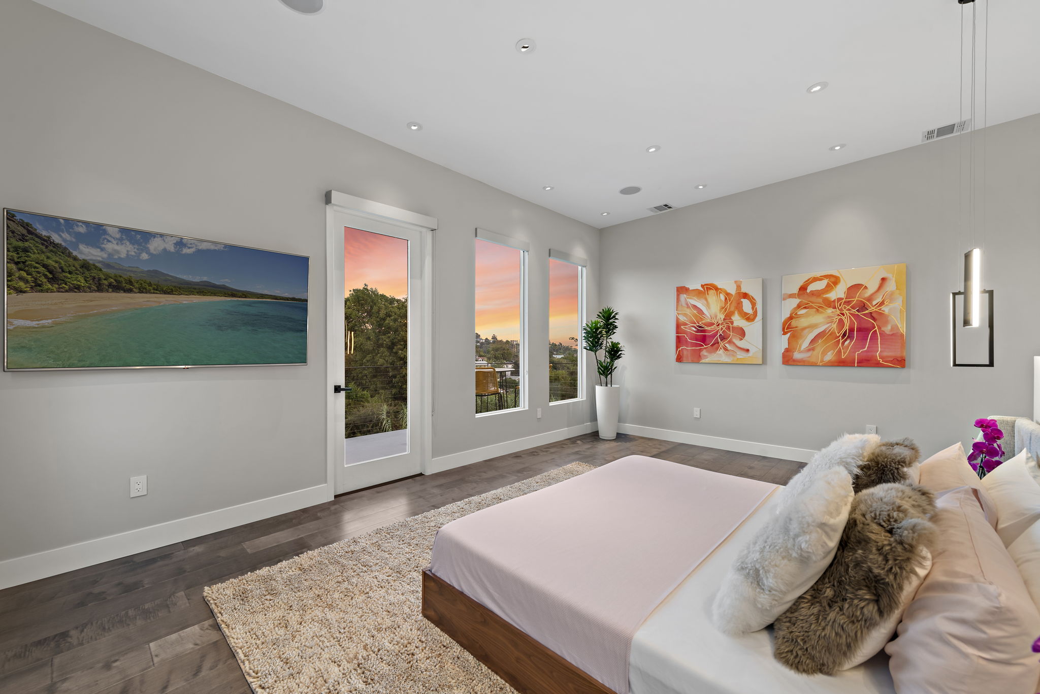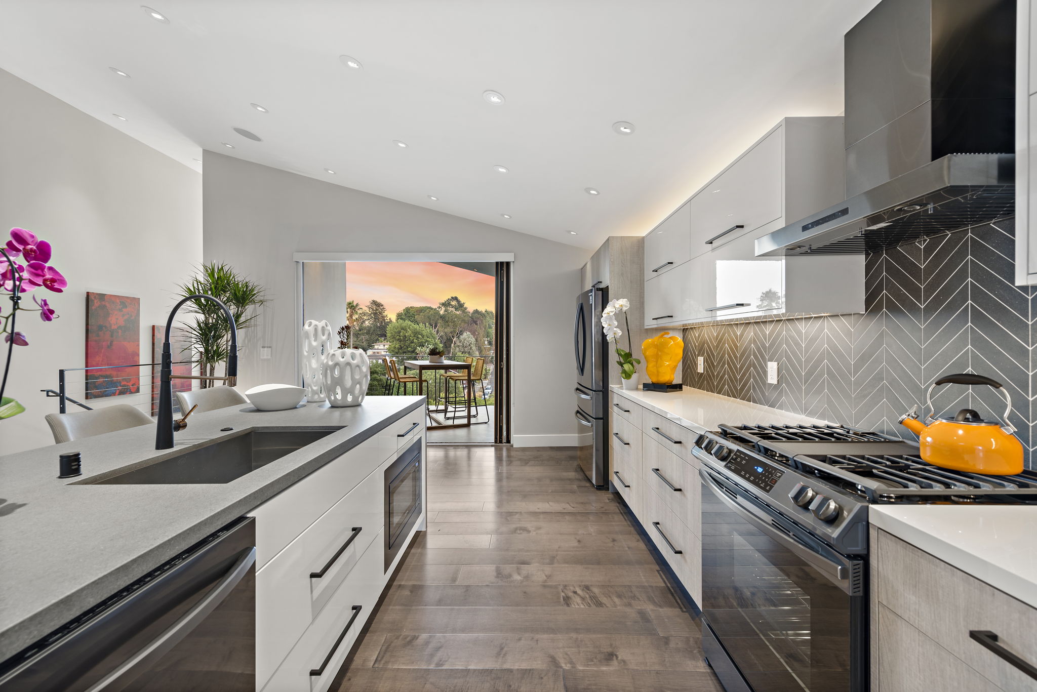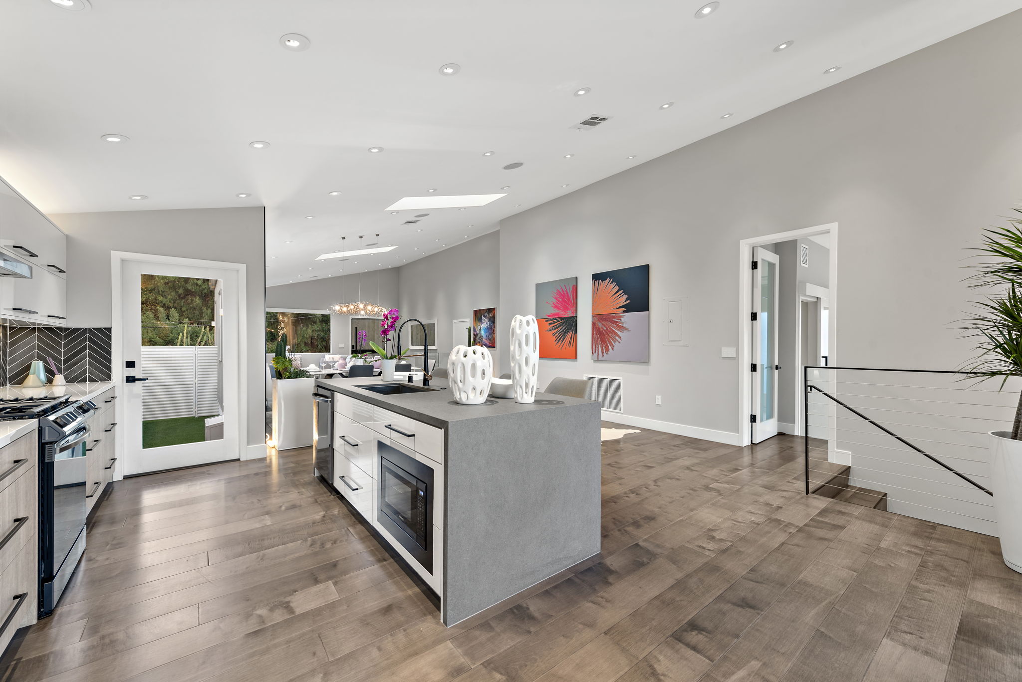 Perfectly sited on a tiered lot with East facing views, this 3-bedroom 3 bath home was taken down to one wall and completely rebuilt into a work of art in perfect harmony with today’s indoor/outdoor lifestyle. Multiple suspended patios bring the outside in at the master bedroom as well as off the kitchen, affording al fresco dining with views of the twinkling lights of the rolling hills & DTLA. This multi-tiered lot provides numerous areas to gather.